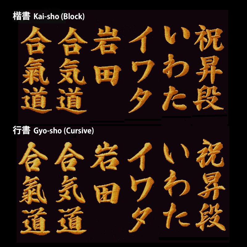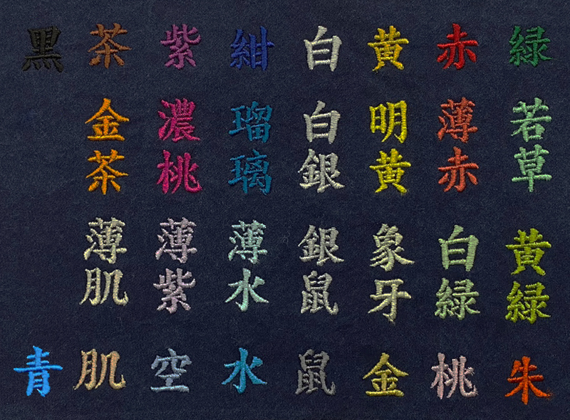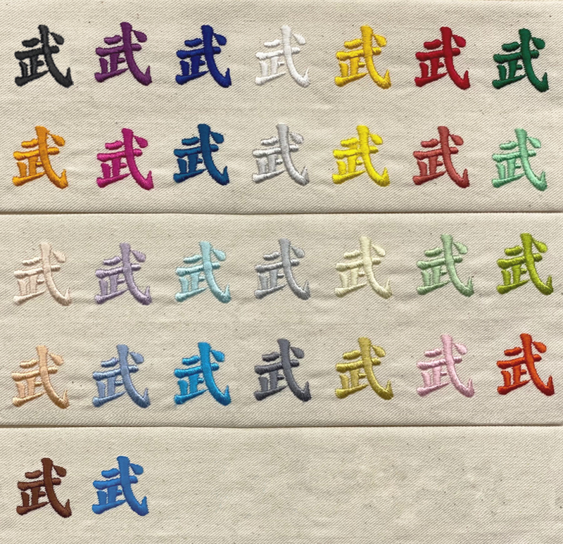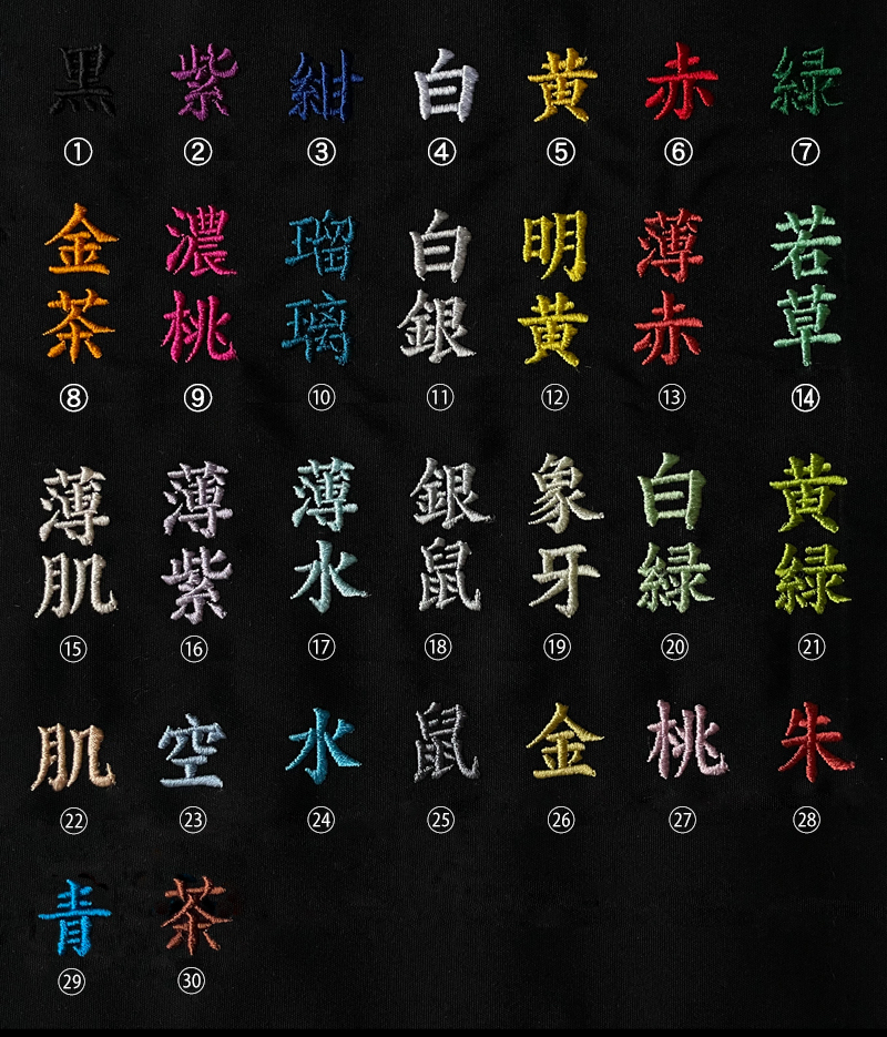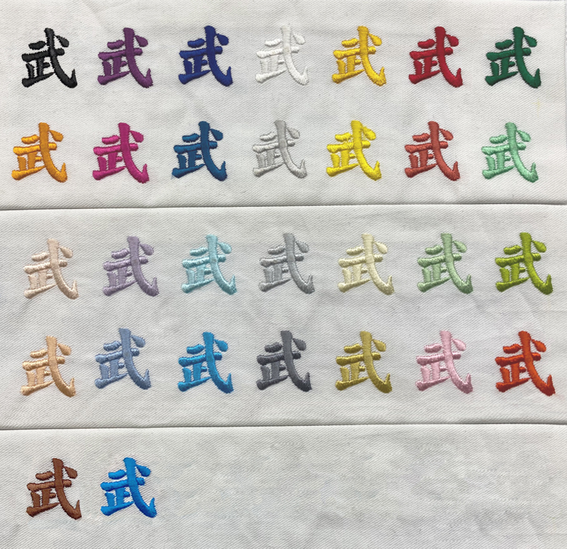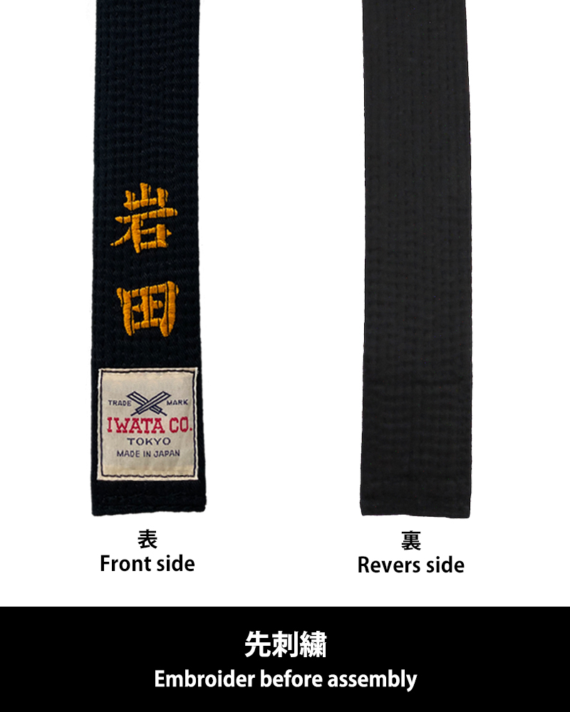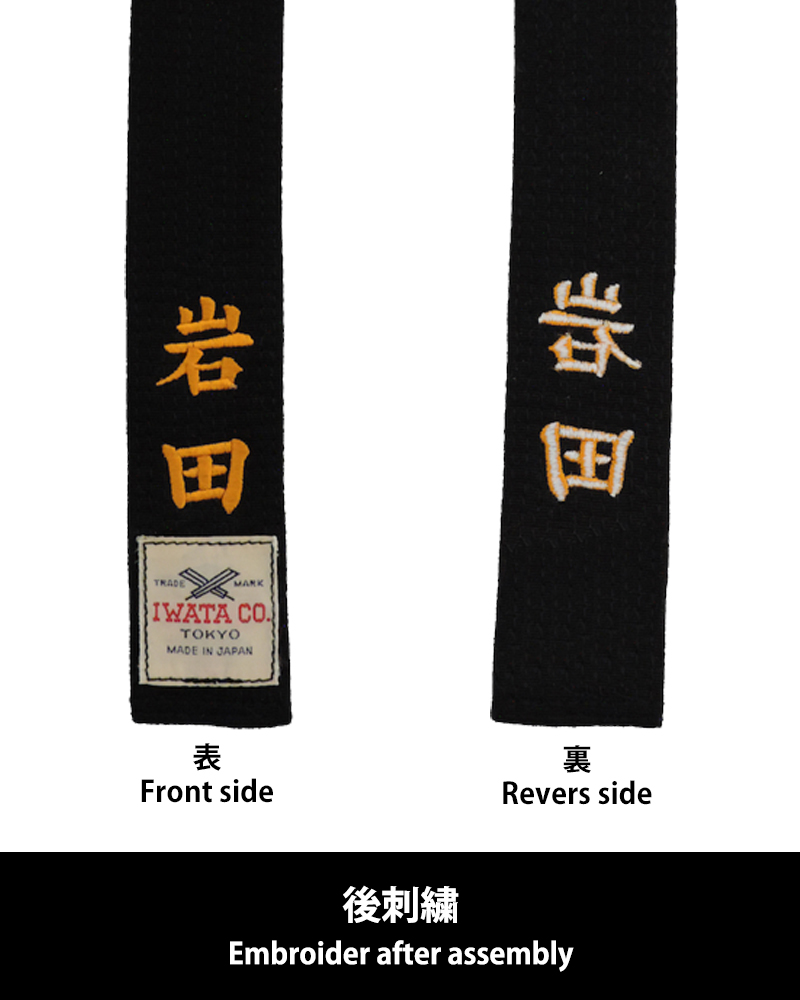 黒帯/八丈帯/朱子帯/茶帯 | 約2.5㎝×2.5㎝ | 表裏両側 | 先刺繍 | 可能 |