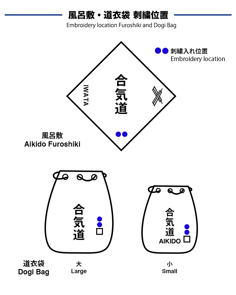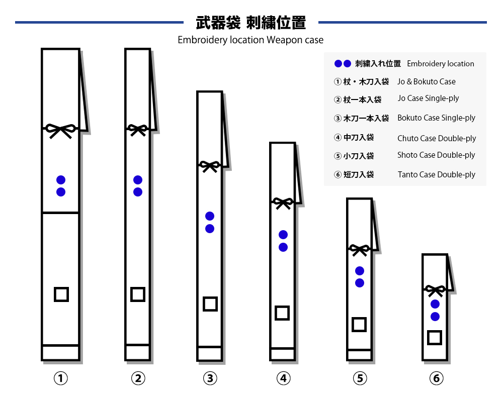 >刺繍位置【武器袋】 | >刺繍位置【風呂敷/道衣袋】 |